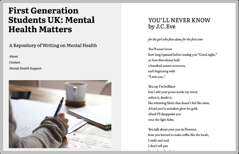 I built a website to showcase the written pieces produced by first generation students in the writing workshops and it is now live.